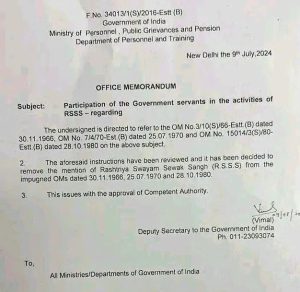 सरकारी कर्मचारी भी संघ(आरएसएस) के कार्यक्रम में अब शामिल हो सकेंगे